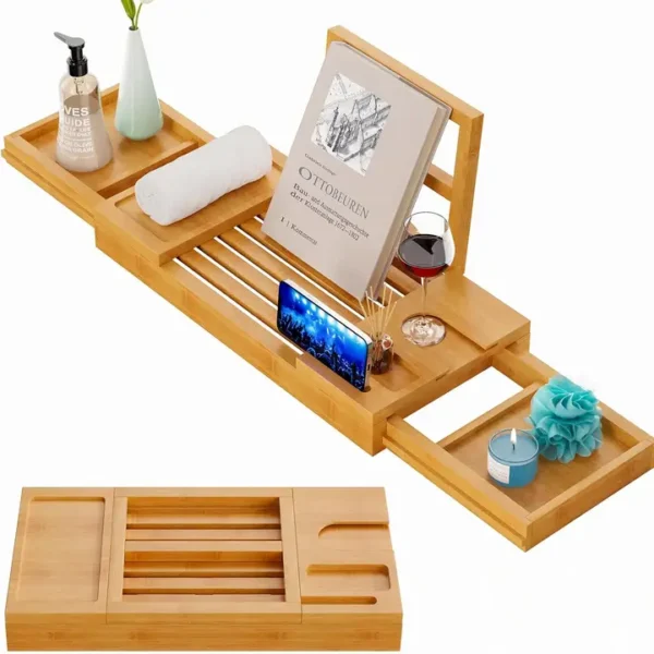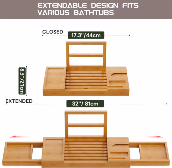 This adjustable tray expands from 17.3″ to 32″ to fit most standard bathtubs. It’s easy to use—just slide to extend with no tools needed. When you’re done, it folds neatly in half for compact storage and portability.